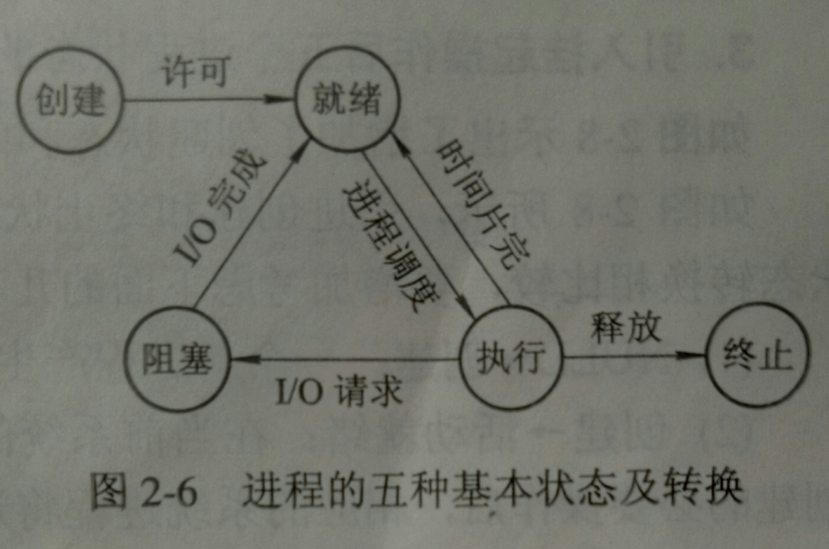 - 运行态——–缺少资源(不是CPU)———>阻塞
